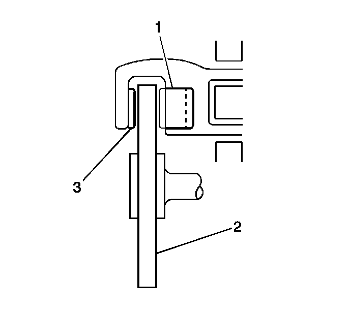 This caliper has a single bore and is mounted to the steering knuckle with two mounting bolts. Hydraulic pressure, created by applying the brake pedal, is converted by the caliper to a stopping force. This force acts equally against the piston (1) and the bottom of the caliper bore to move the piston outward and to slide the caliper inward, resulting in a clamping action on the rotor (2). This clamping action forces the linings against the rotor, creating friction to stop the vehicle.