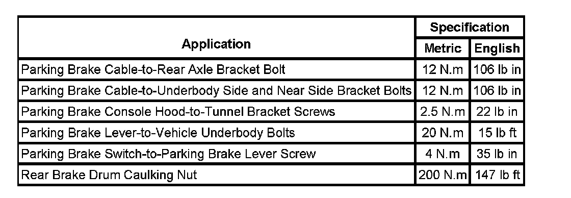Parking Brake System: Specifications