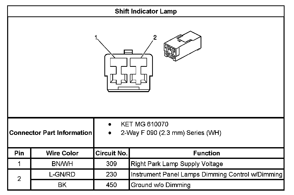 Shift Indicator Lamp: