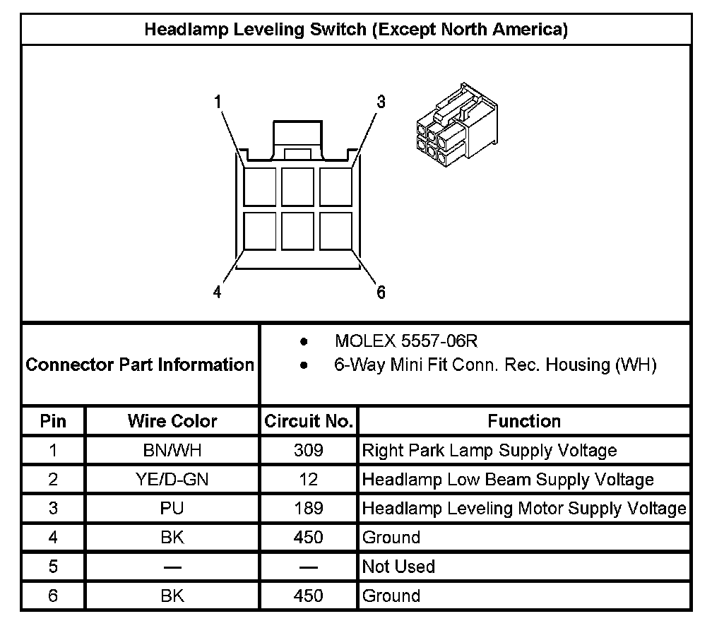 Headlamp Leveling Switch (Except North America):