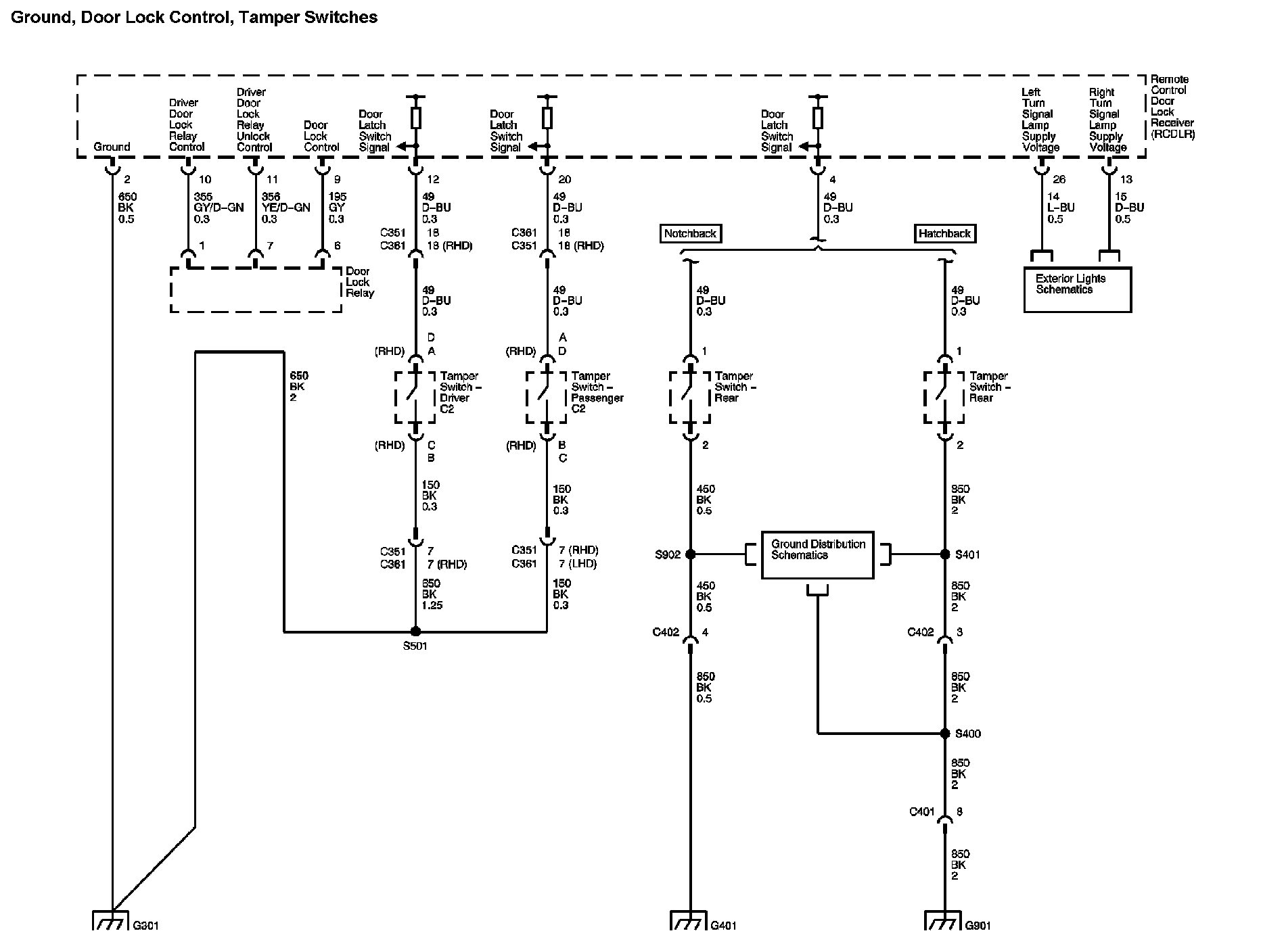 Location: The locations for the Connectors, Grounds, Splices, and Grommets shown within these diagrams can be found via their numbers at Vehicle Locations. Locations