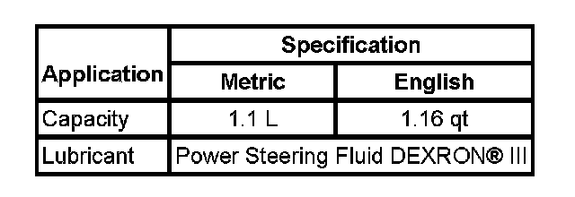 Power Steering Pump Specifications: