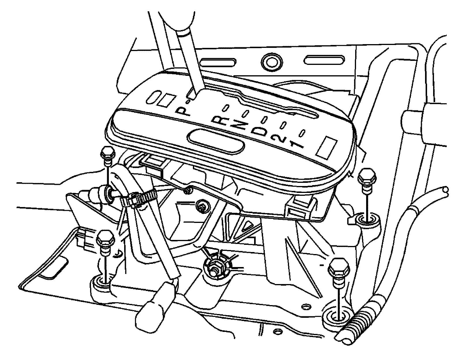 6. Remove the shift control lever assembly mounting bolts.