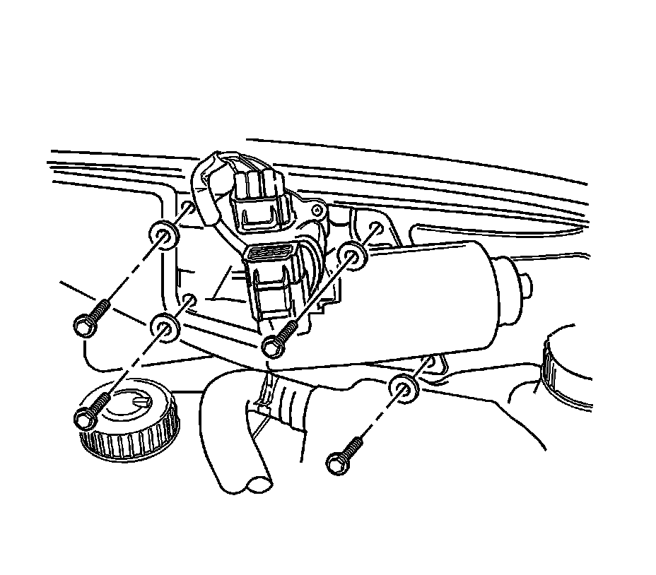 7. Remove the bolts and the wiper motor.