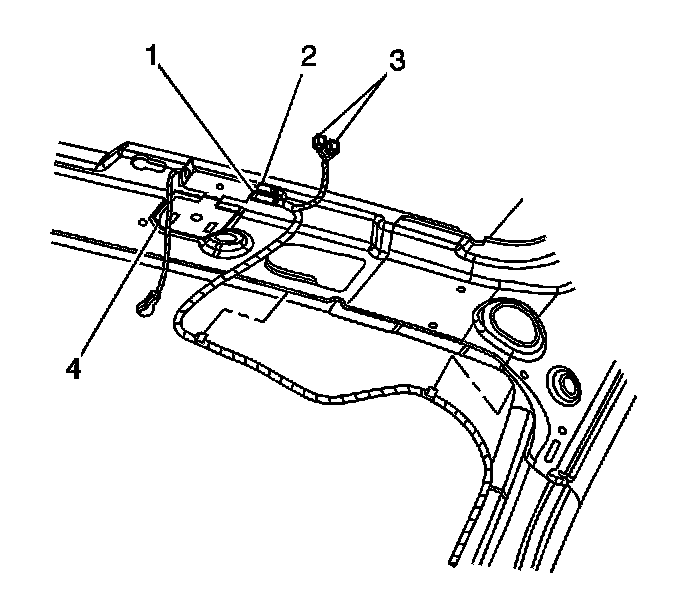 7. Disconnect the antenna cable (2) from the radio antenna module.
