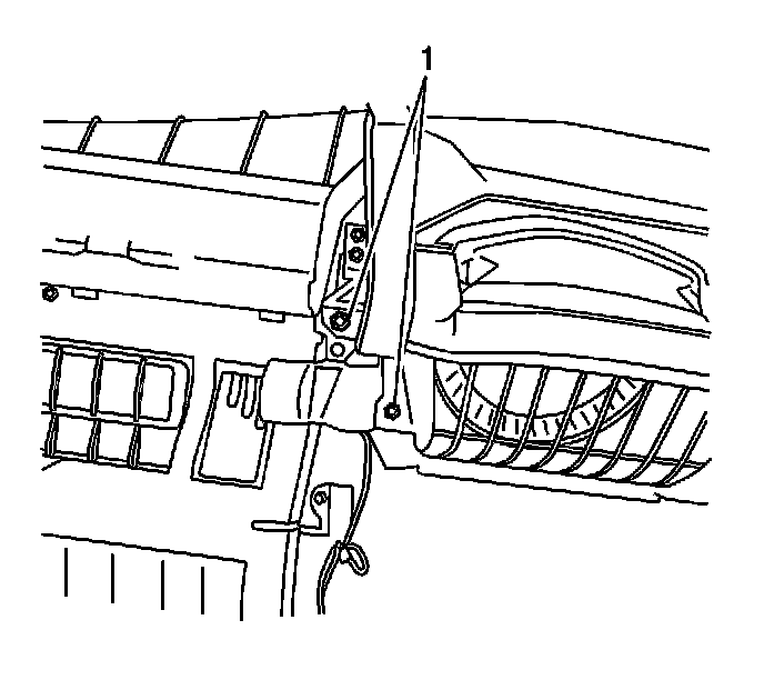 11. Remove the bracket bolts from the HVAC module assembly lower support (1).