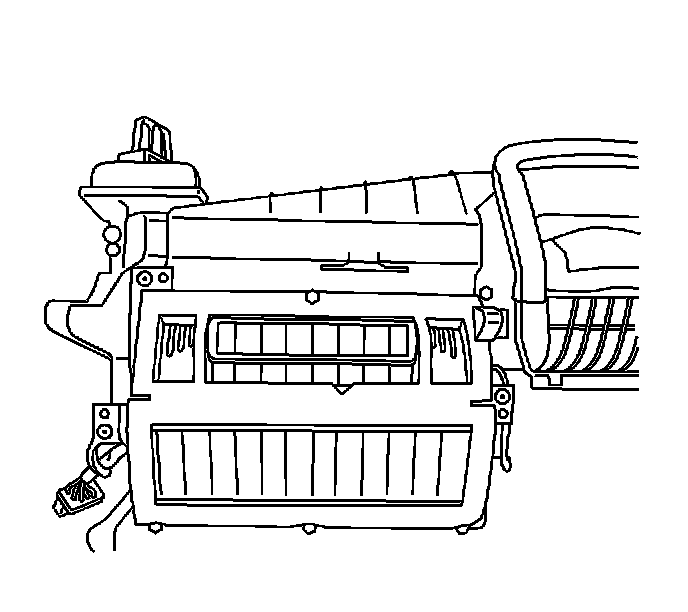 Important: The right front edge of the mode valve assembly is under the recirculation housing.