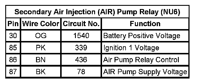 Secondary Air Injection (AIR) Pump Relay (NU6)