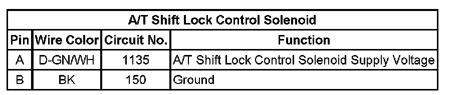 A/T Shift Lock Control Solenoid: