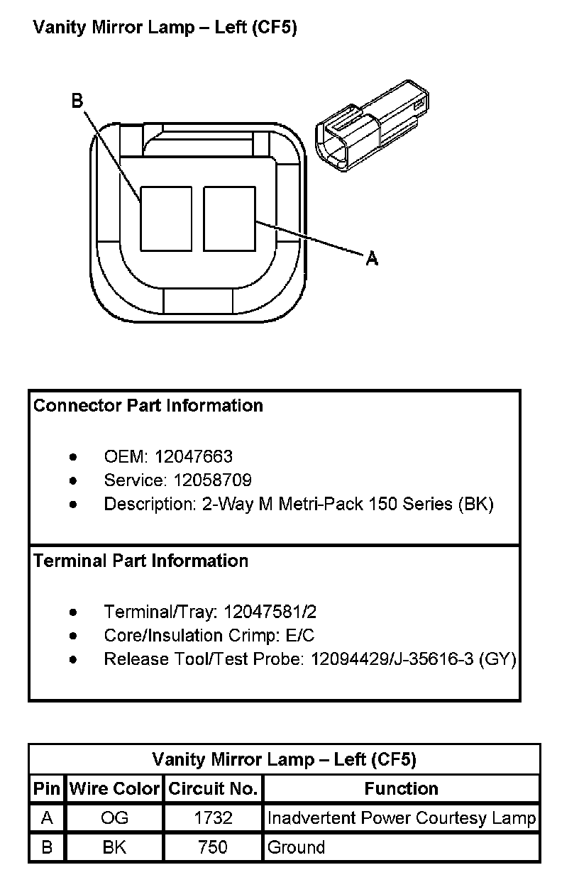 Vanity Mirror Lamp - Left (With RPO Code CF5):
