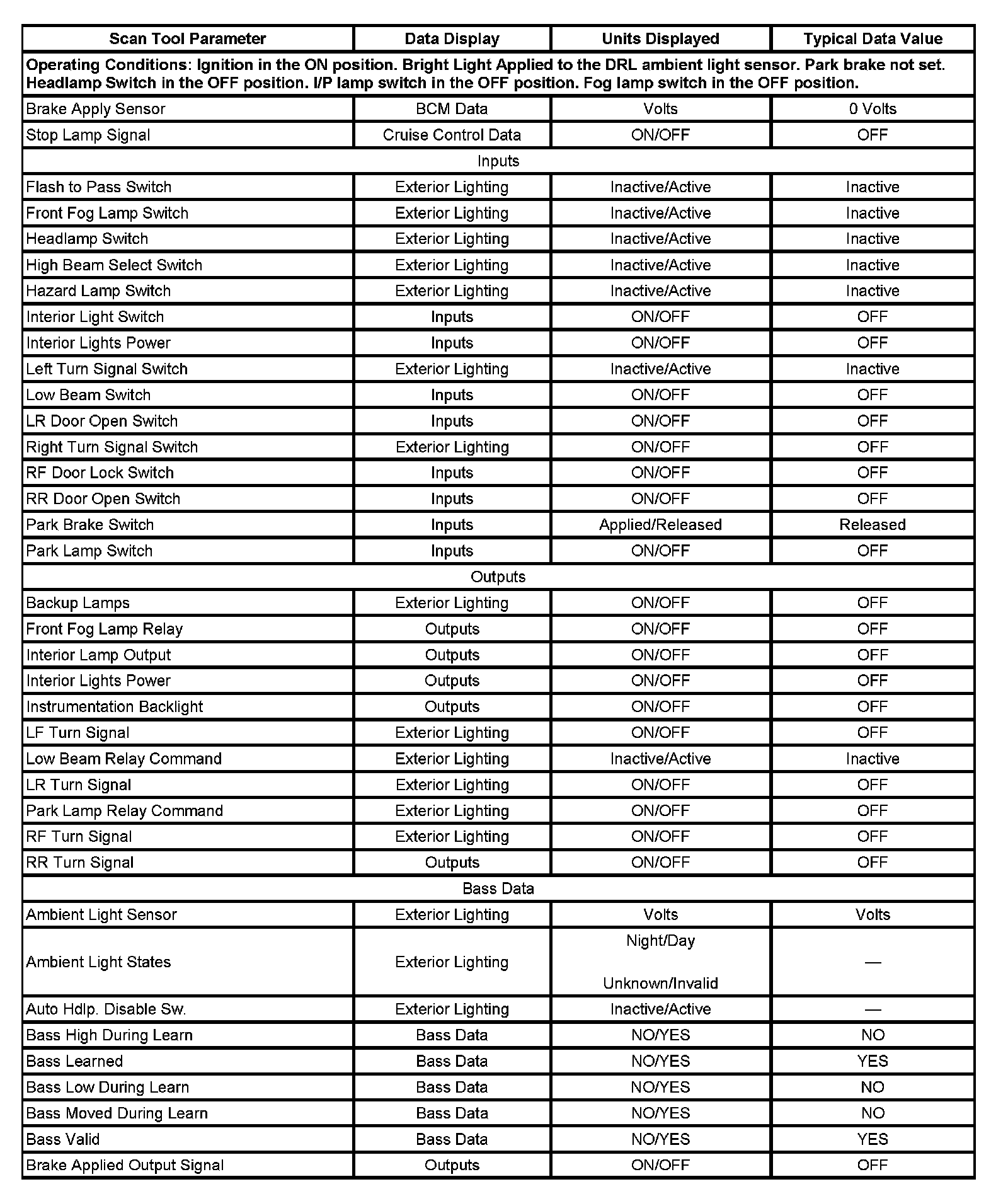Scan Tool Data List