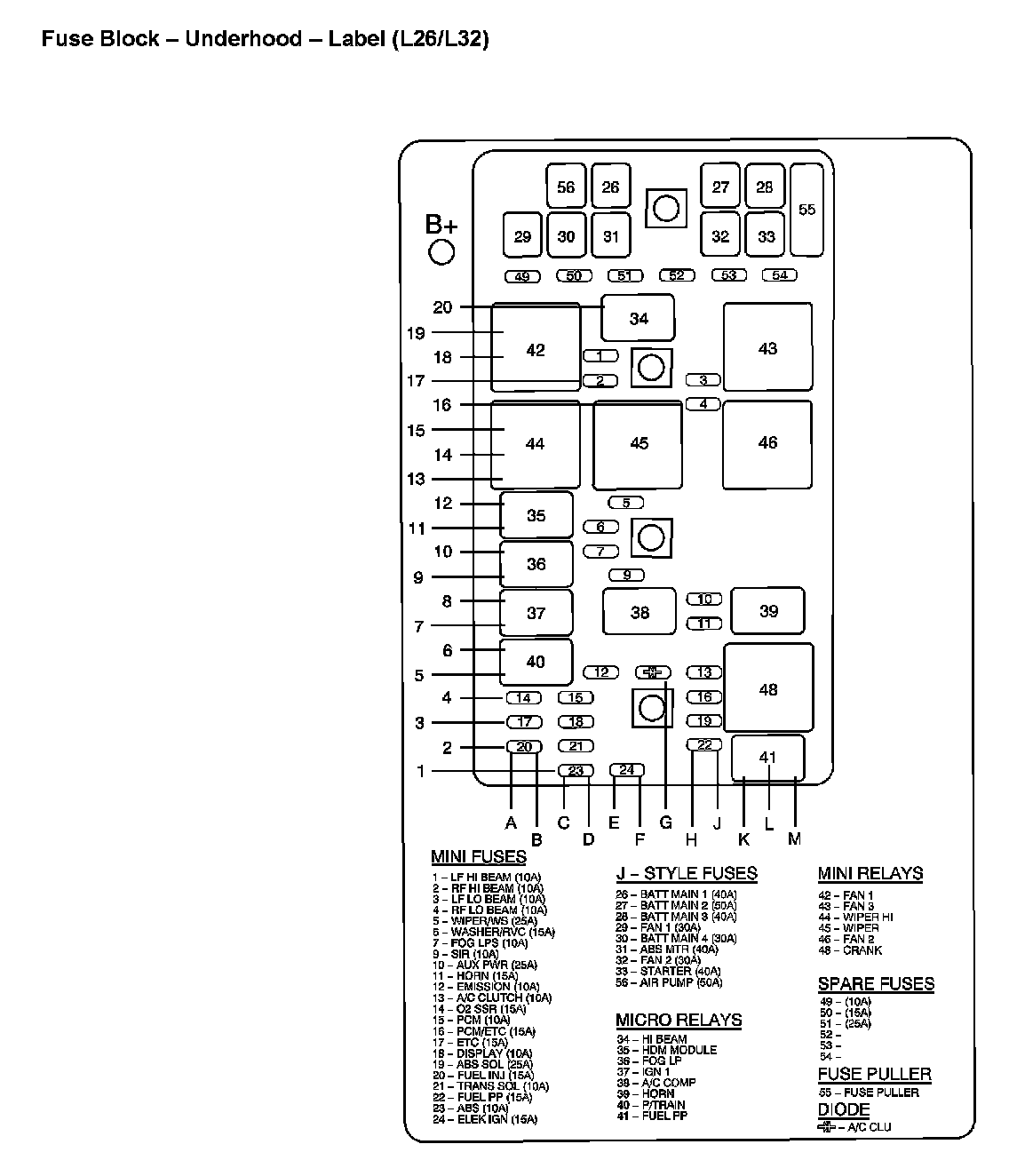 Fuse Block - Underhood - Label (With RPO Code L26/L32):