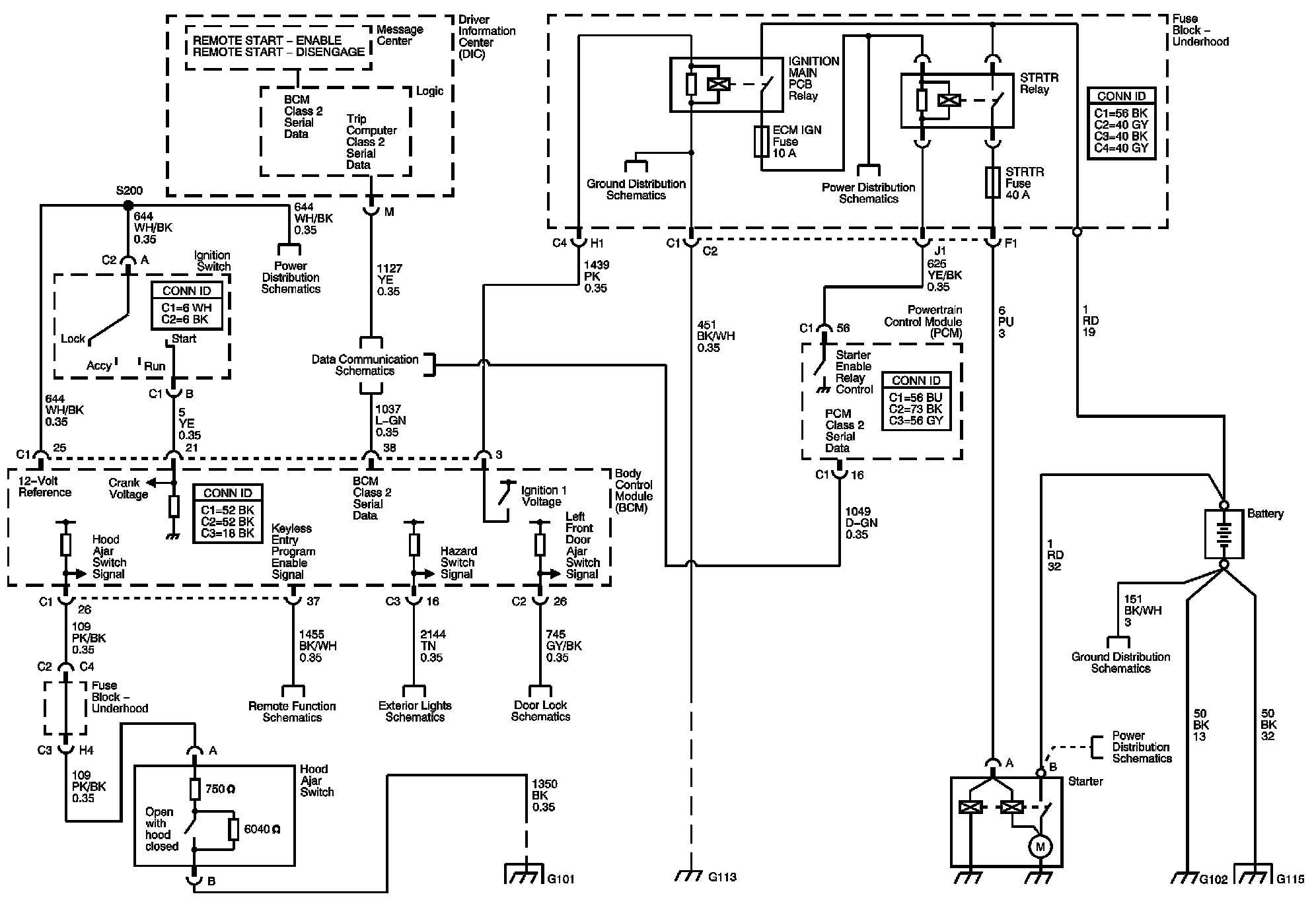 The locations for the Connectors, Grounds, Splices, and Grommets shown within these diagrams can be found via their numbers at Vehicle Locations.