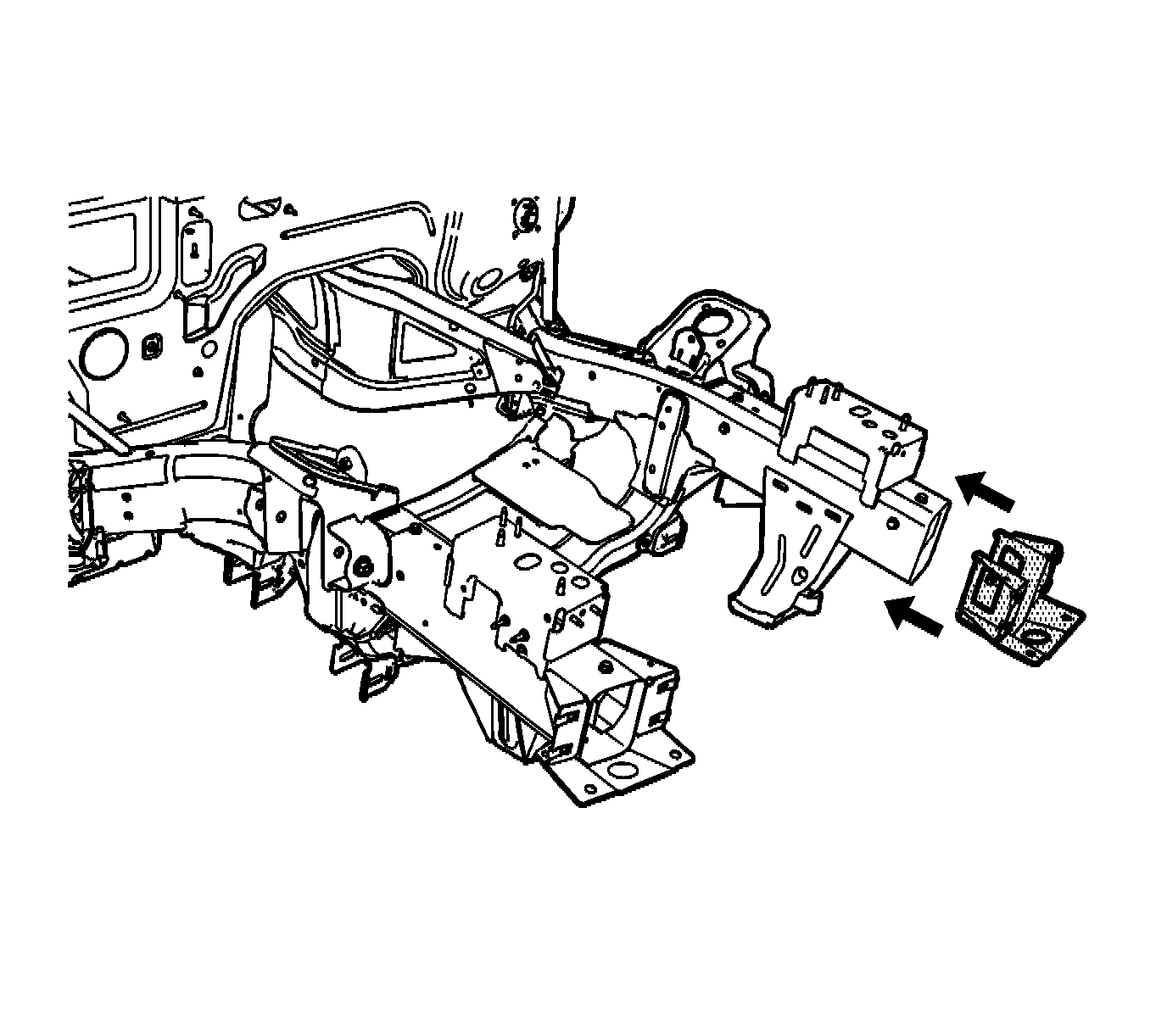 3. Position the front bumper bracket to the vehicle. Ensure proper positioning of the front bumper bracket by using 3-dimensional measuring equipment. Clamp the front bracket into place.
