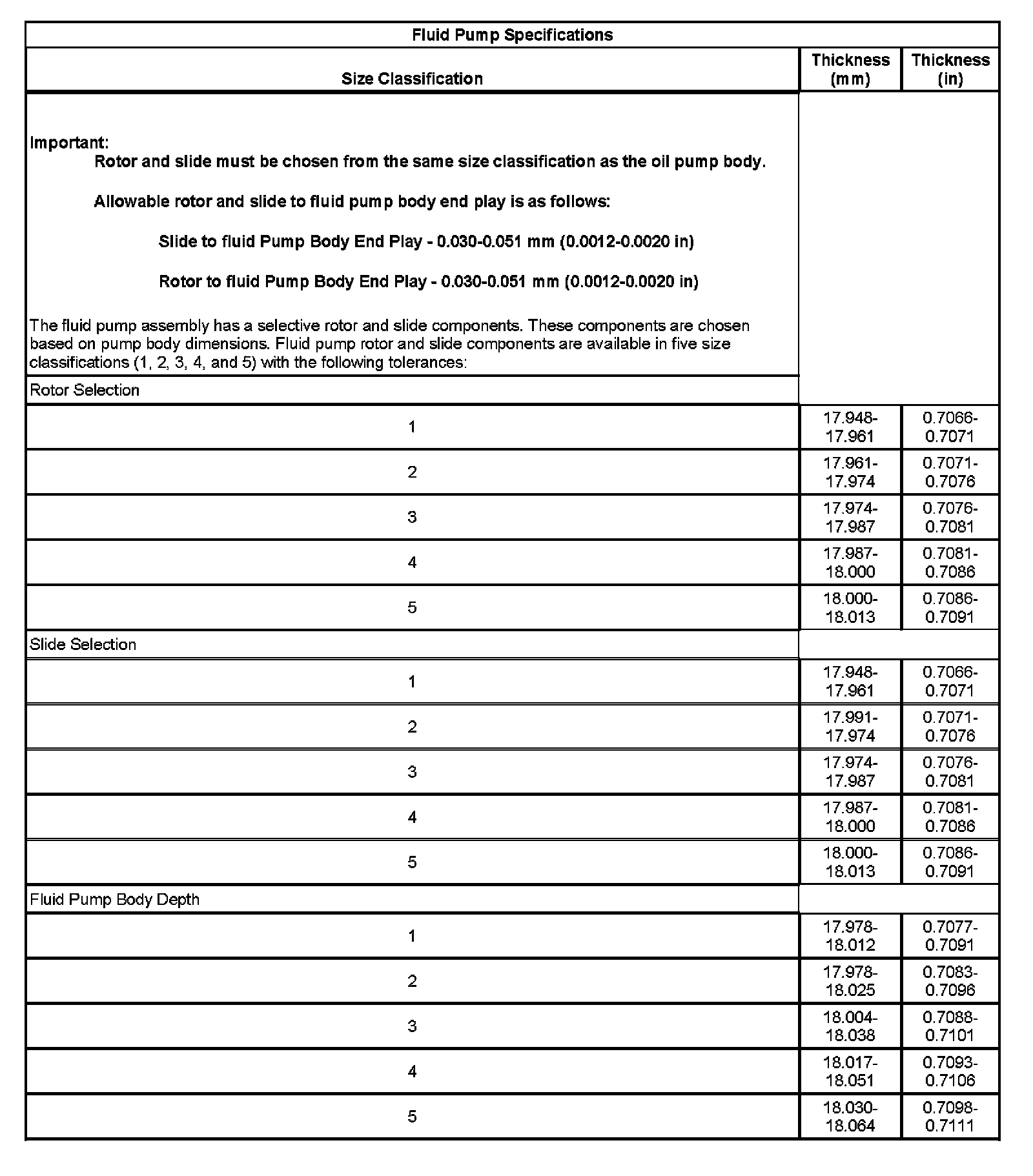 Transmission Fluid Pump Specifications