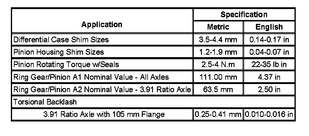 Rear Axle Specifications: