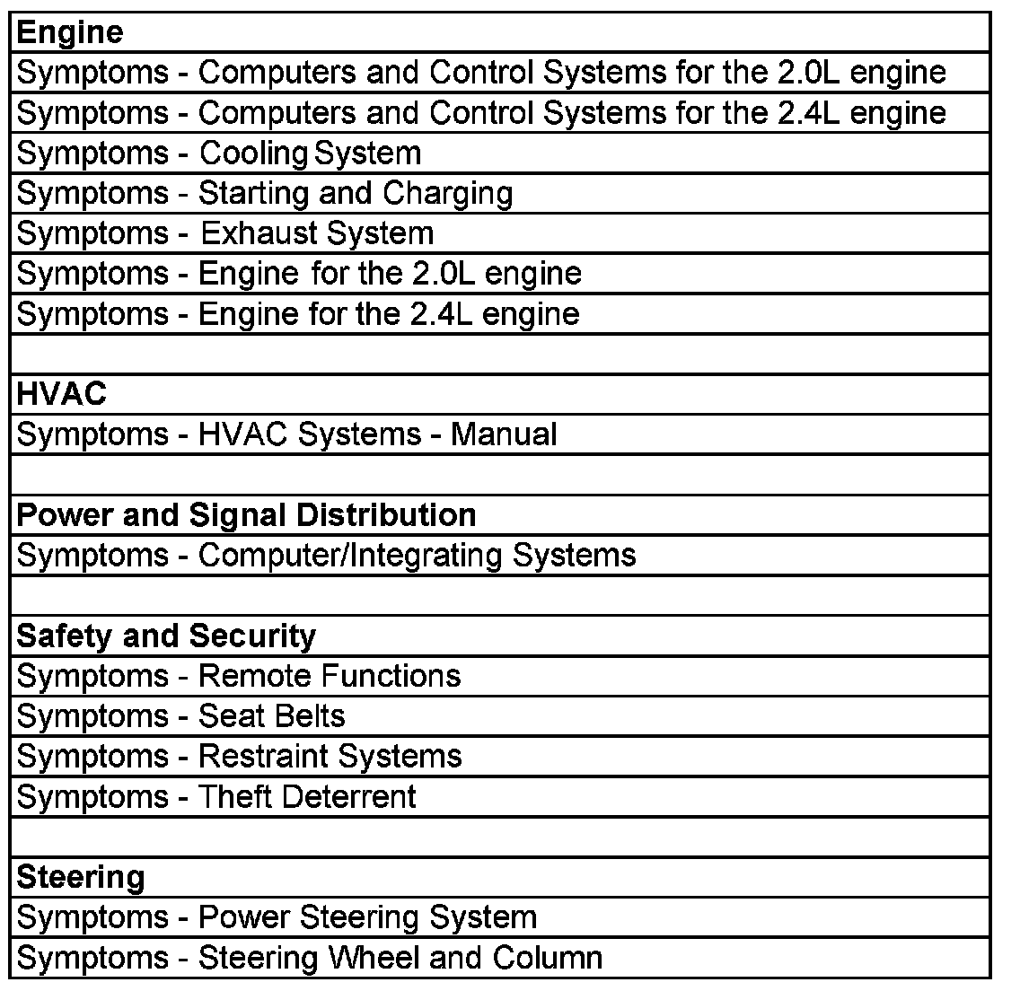 Symptoms - Vehicle