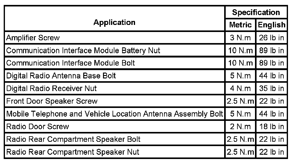 Fastener Tightening Specifications