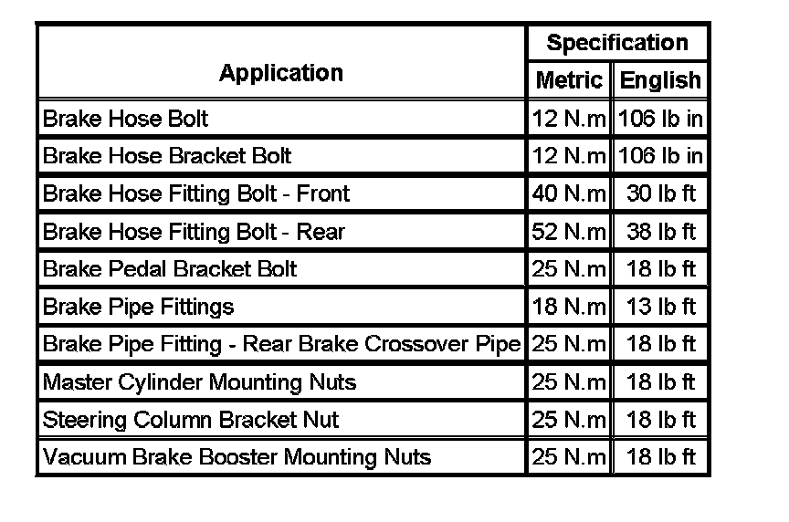 Fastener Tightening Specifications: