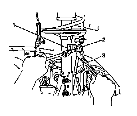 2.Use a 6 mm wrench in order to hold the right front stabilizer shaft link stud (2) to the stabilizer link (3). Install the nut and the stud to the strut bracket (1).