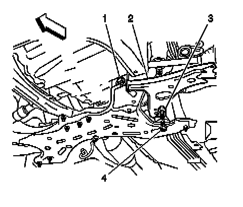 1.Install the 2 bolts (1, 2) to the crossmember.