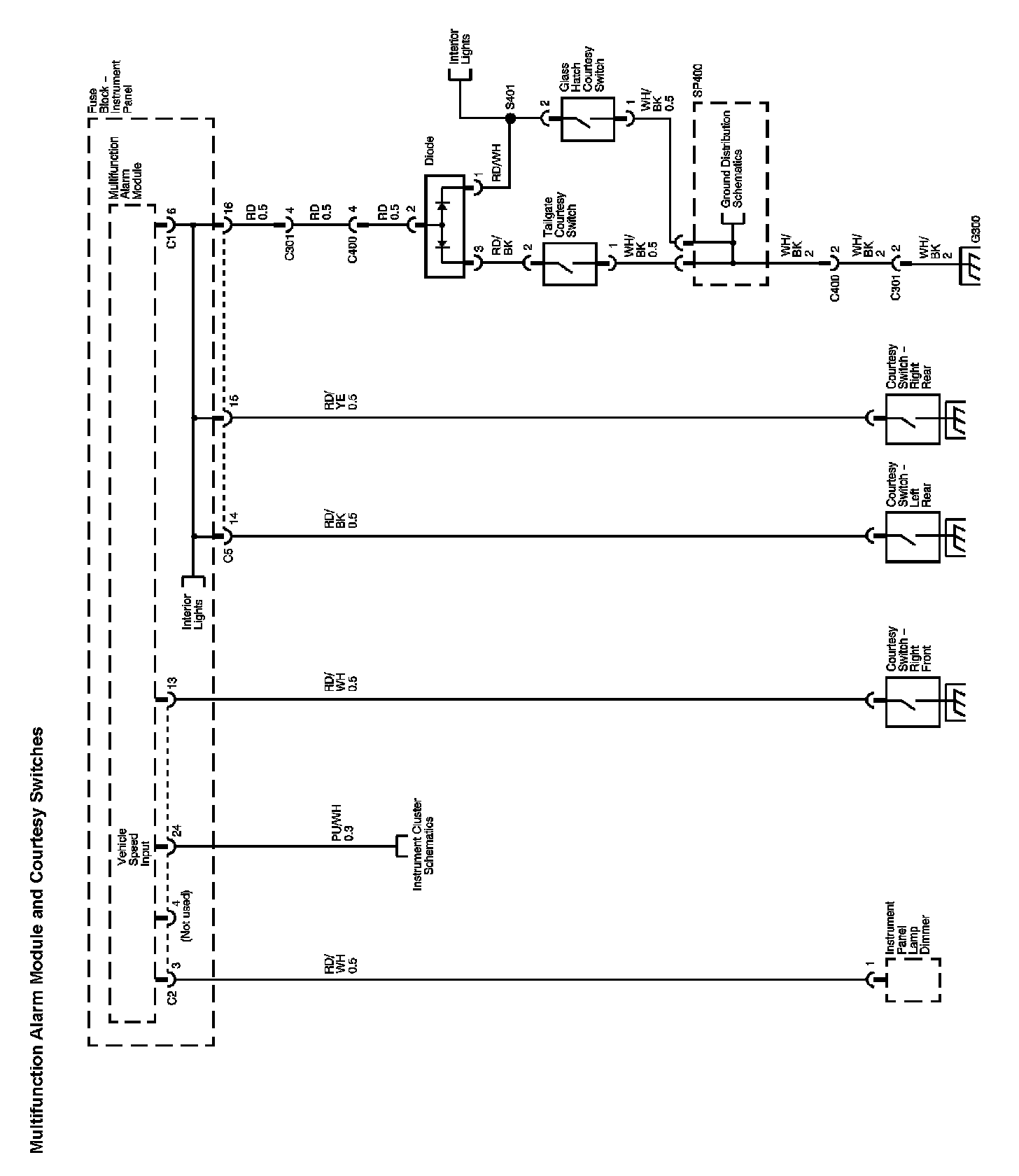 Locations: The locations for the Connectors, Grounds, Splices, and Grommets shown within these diagrams can be found via their numbers at Vehicle Locations. Locations