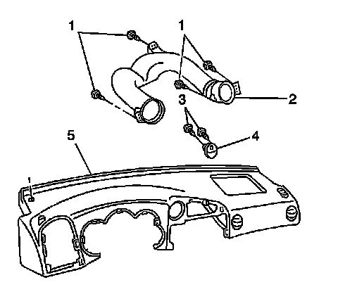 3. Remove the upper air distribution duct (2) duct from the upper IP panel (5).