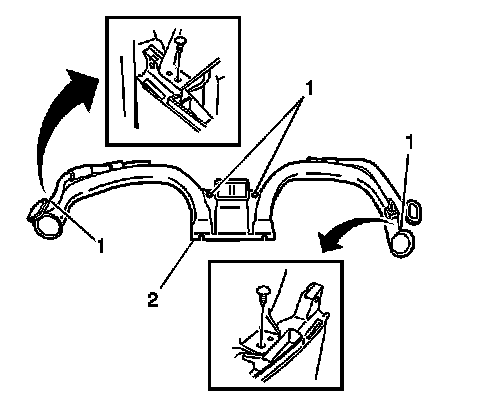 4. Remove the four push clips (1) from the lower air distribution duct (2).