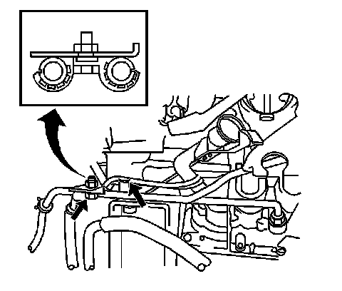 10. Remove the 2 oil cooler pipe and filler tube retaining bolts.