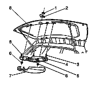 7. Remove the rear wiper motor (5) from the liftgate glass (8).