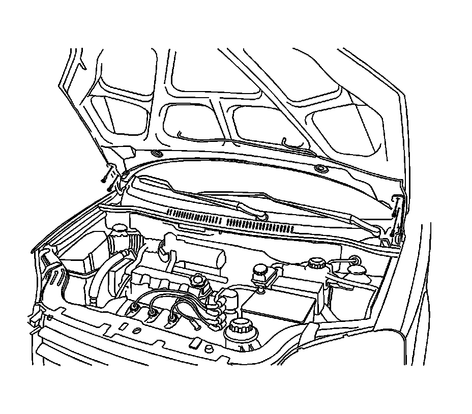 Important: Install protective coverings over the fenders and the windshield in order to prevent damage to the paint, the glass, and the moldings when removing and installing the hood.