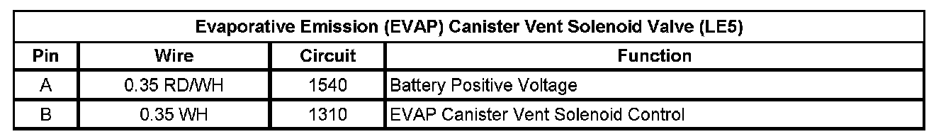 Evaporative Emission (EVAP) Canister Vent Solenoid Valve (LE5)