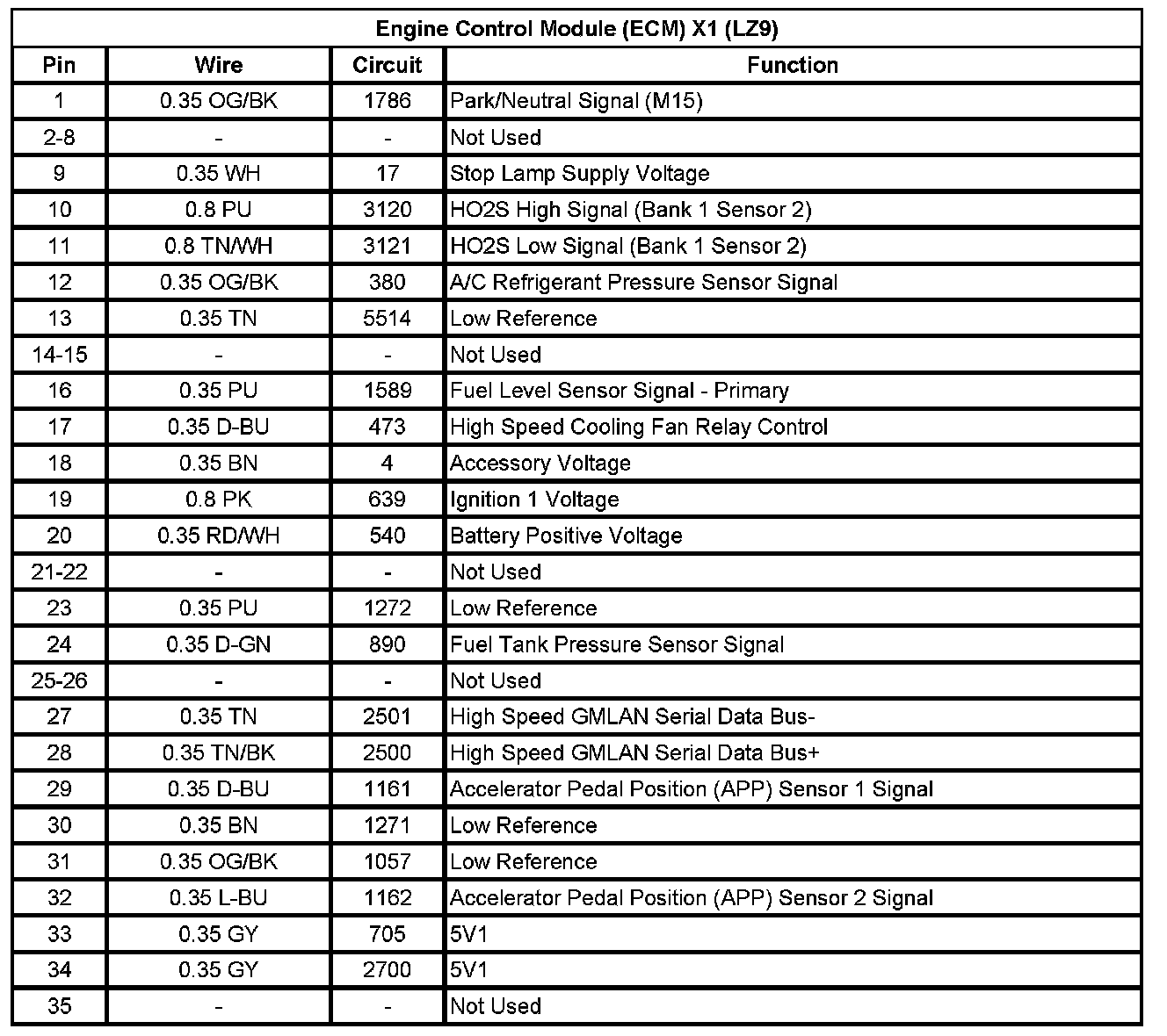 Engine Control Module (ECM) X1 (LZ9) (Pin 1 To 35):