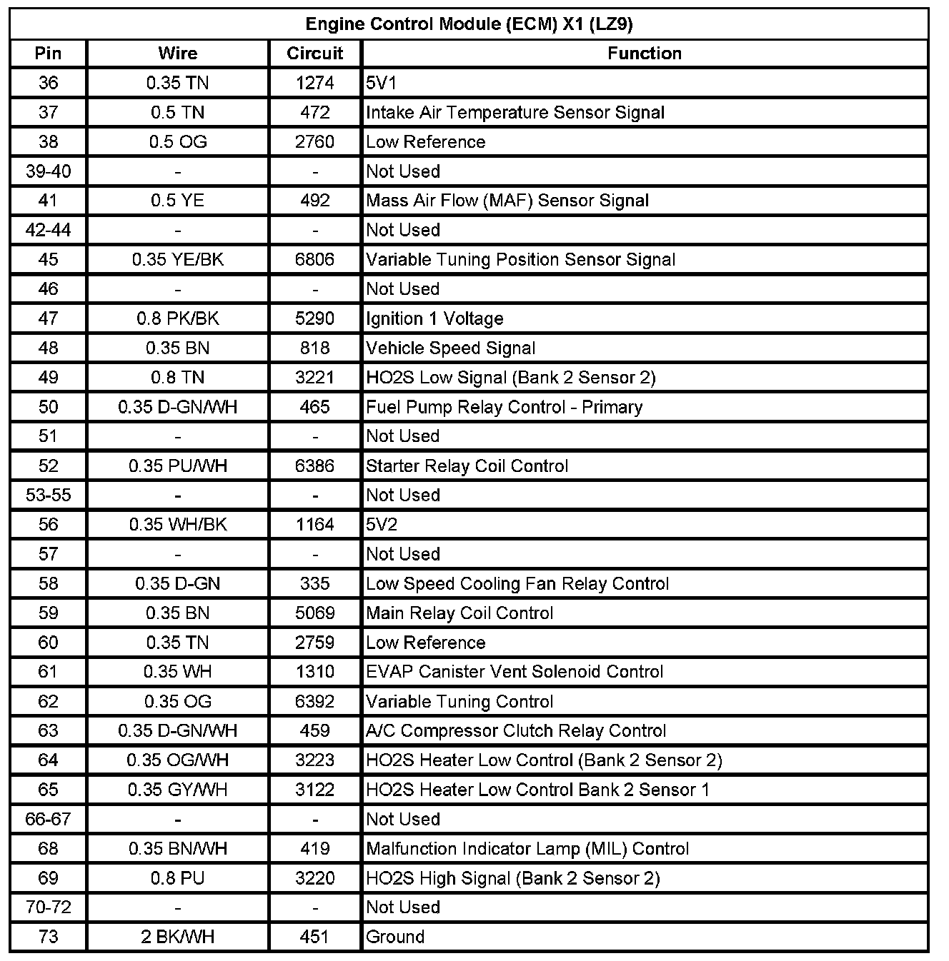 Engine Control Module (ECM) X1 (LZ9) (Pin 36 To 73):