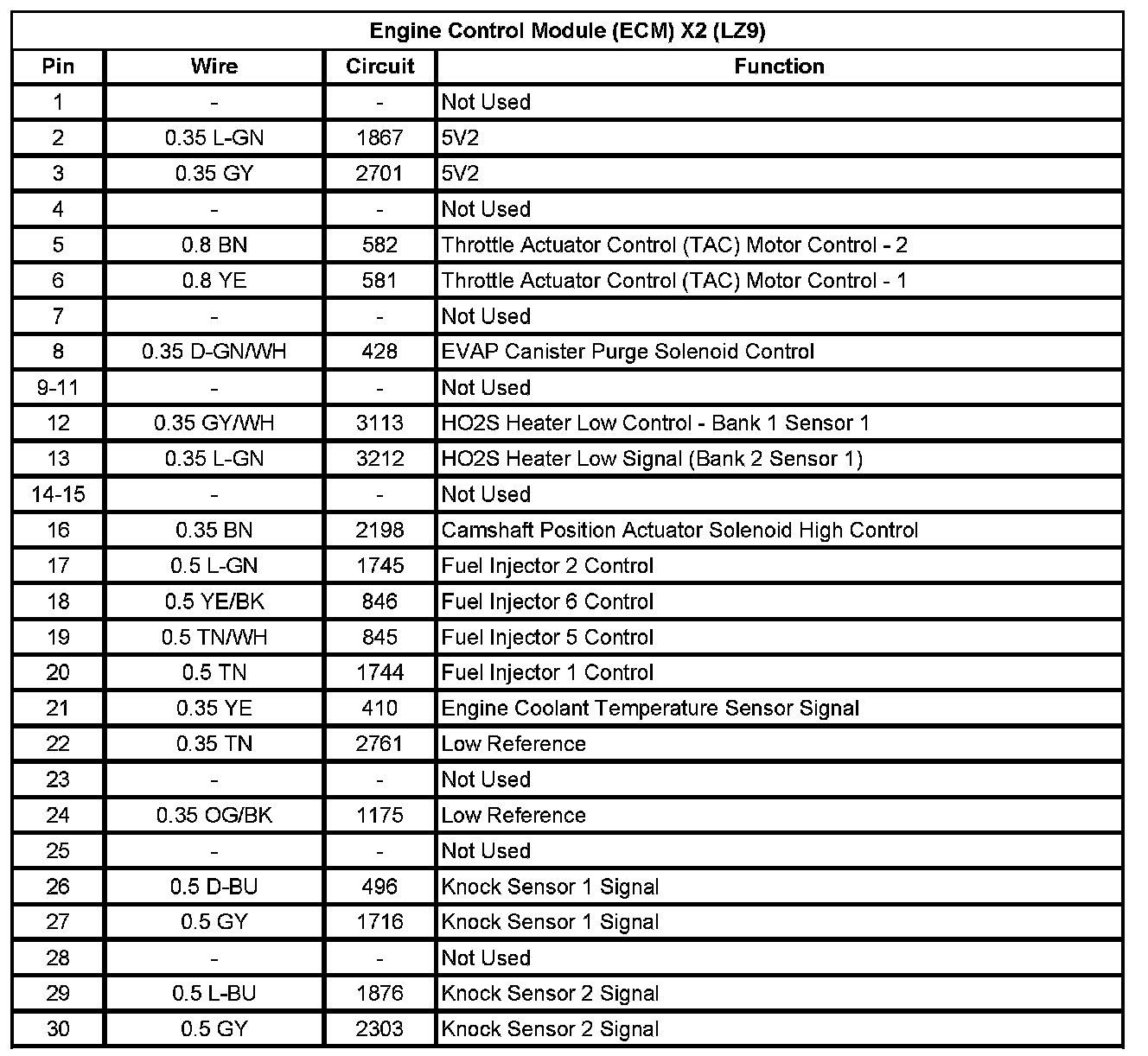 Engine Control Module (ECM) X2 (LZ9) (Pin 1 To 30):