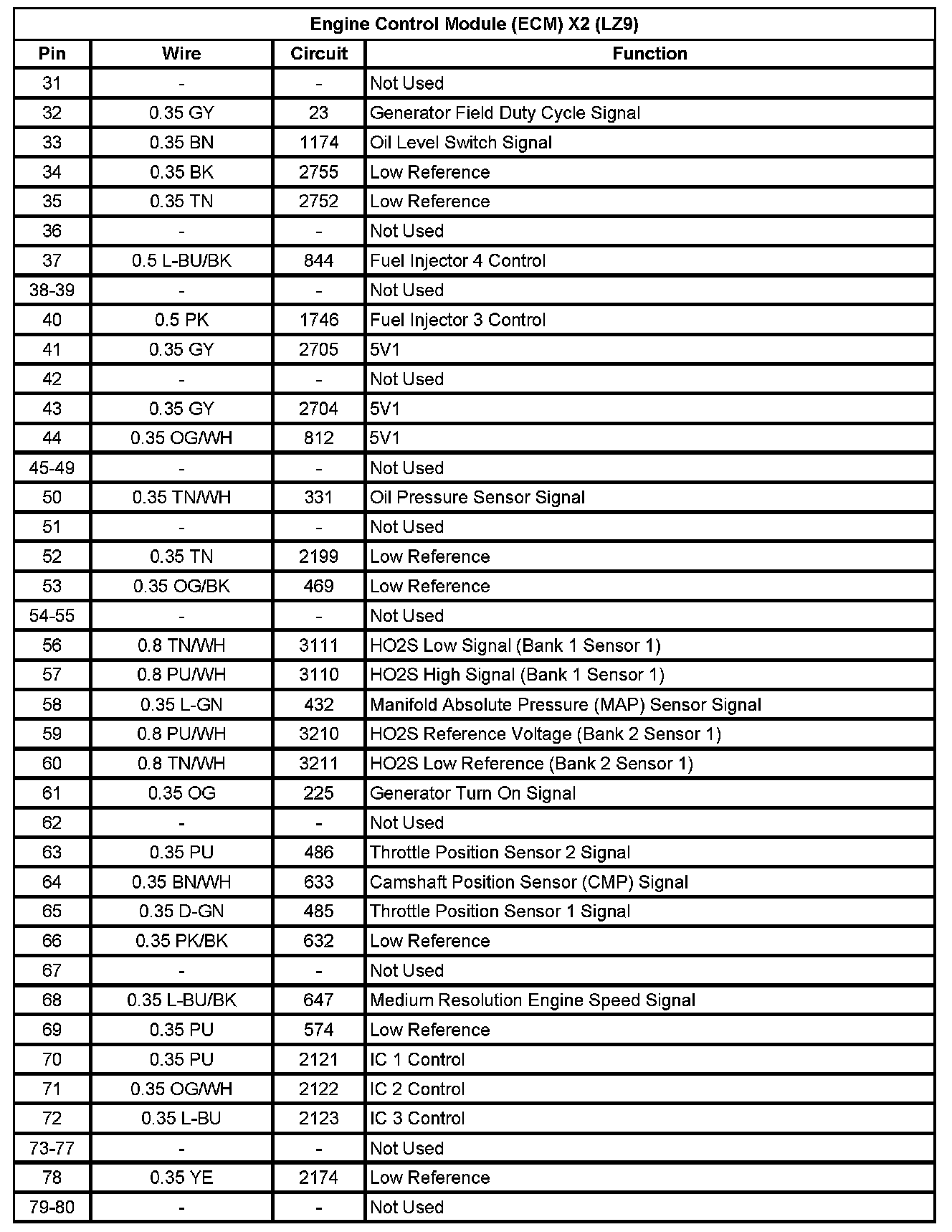 Engine Control Module (ECM) X2 (LZ9) (Pin 31 To 80):
