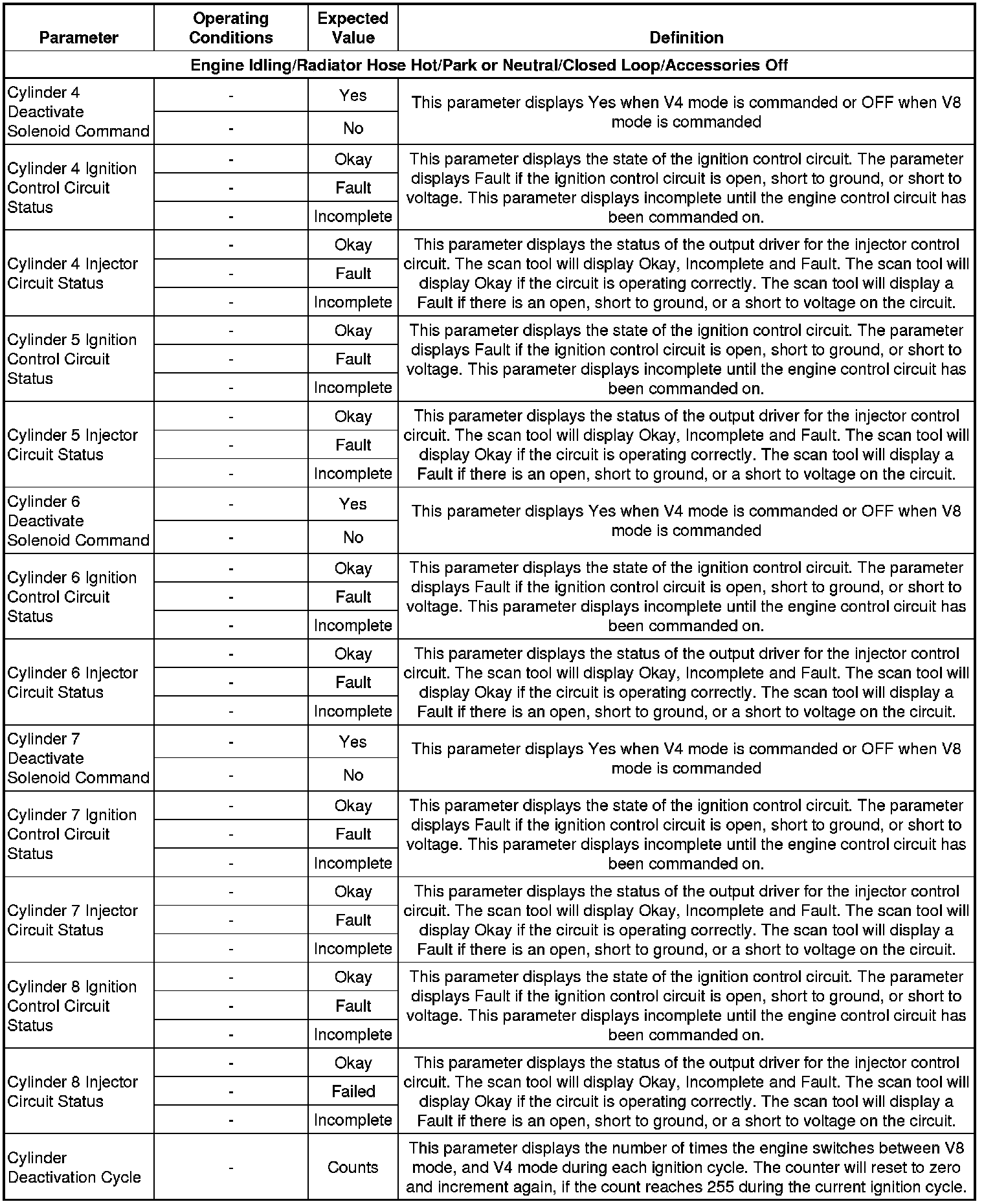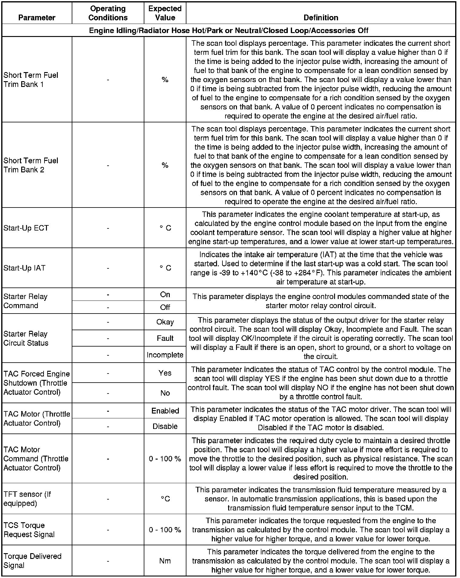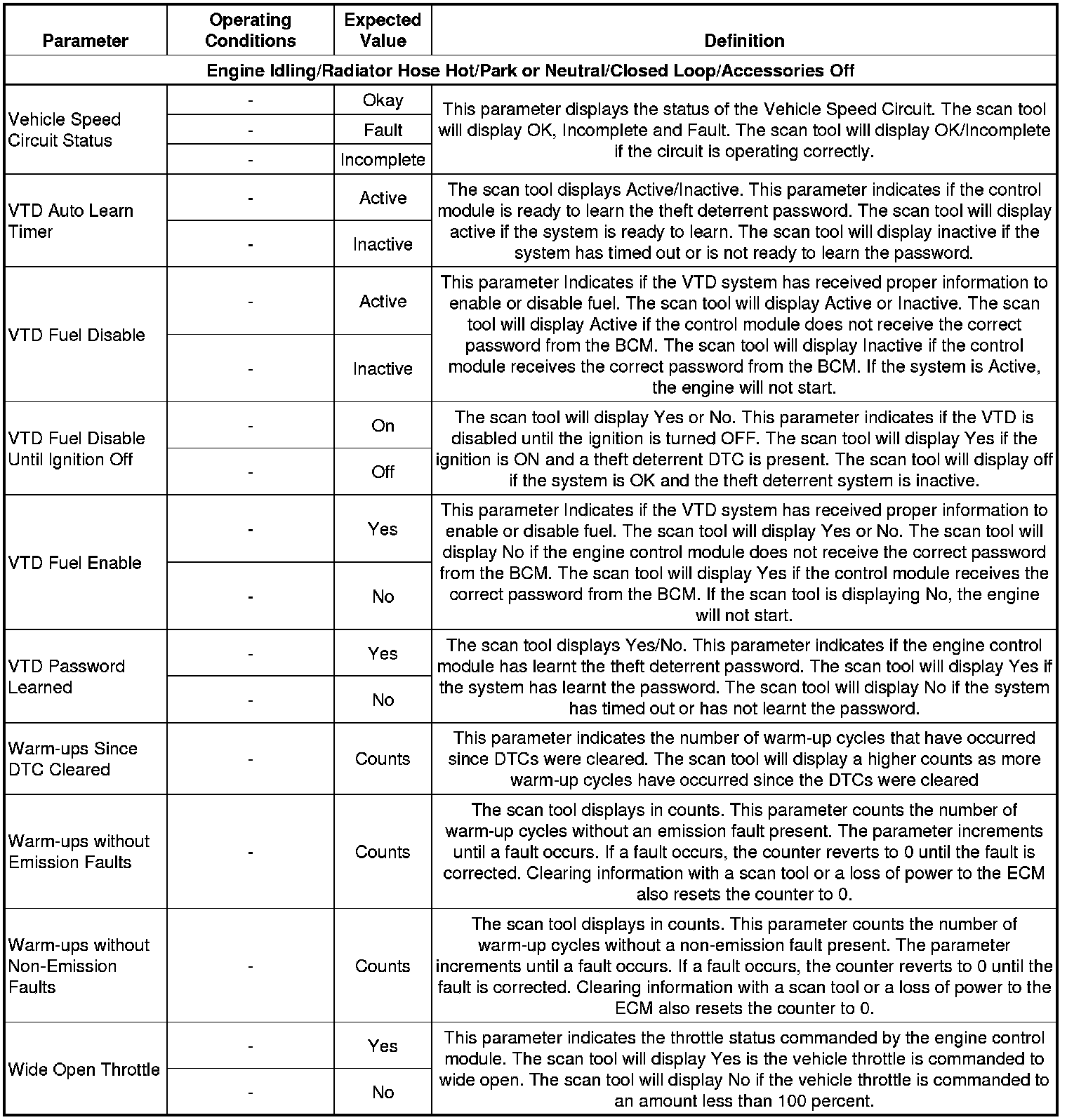 Only the parameters listed below are referenced in this service information for use in diagnosis. If all values are within the typical range described below, refer to Symptoms - Engine Controls (- Symptoms - Engine Controls) .