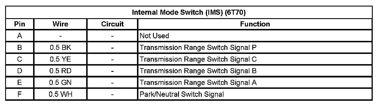 Internal Mode Switch (IMS) (6T70)
