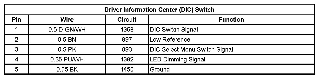 Driver Information Center (DIC) Switch