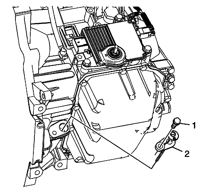 5. Remove the transaxle fluid level indicator bolt (1) from the transaxle.