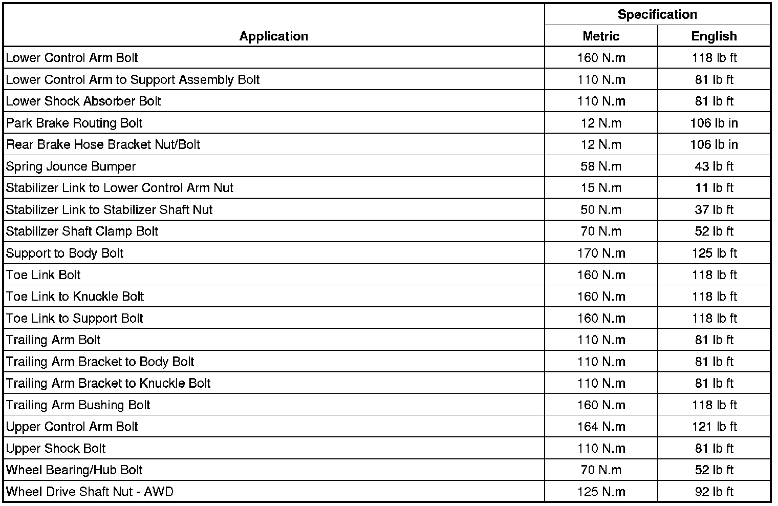 Fastener Tightening Specifications