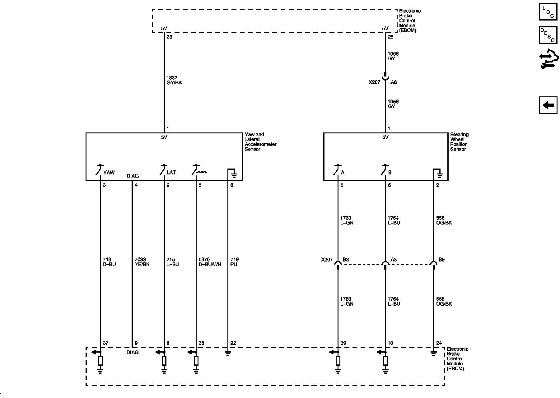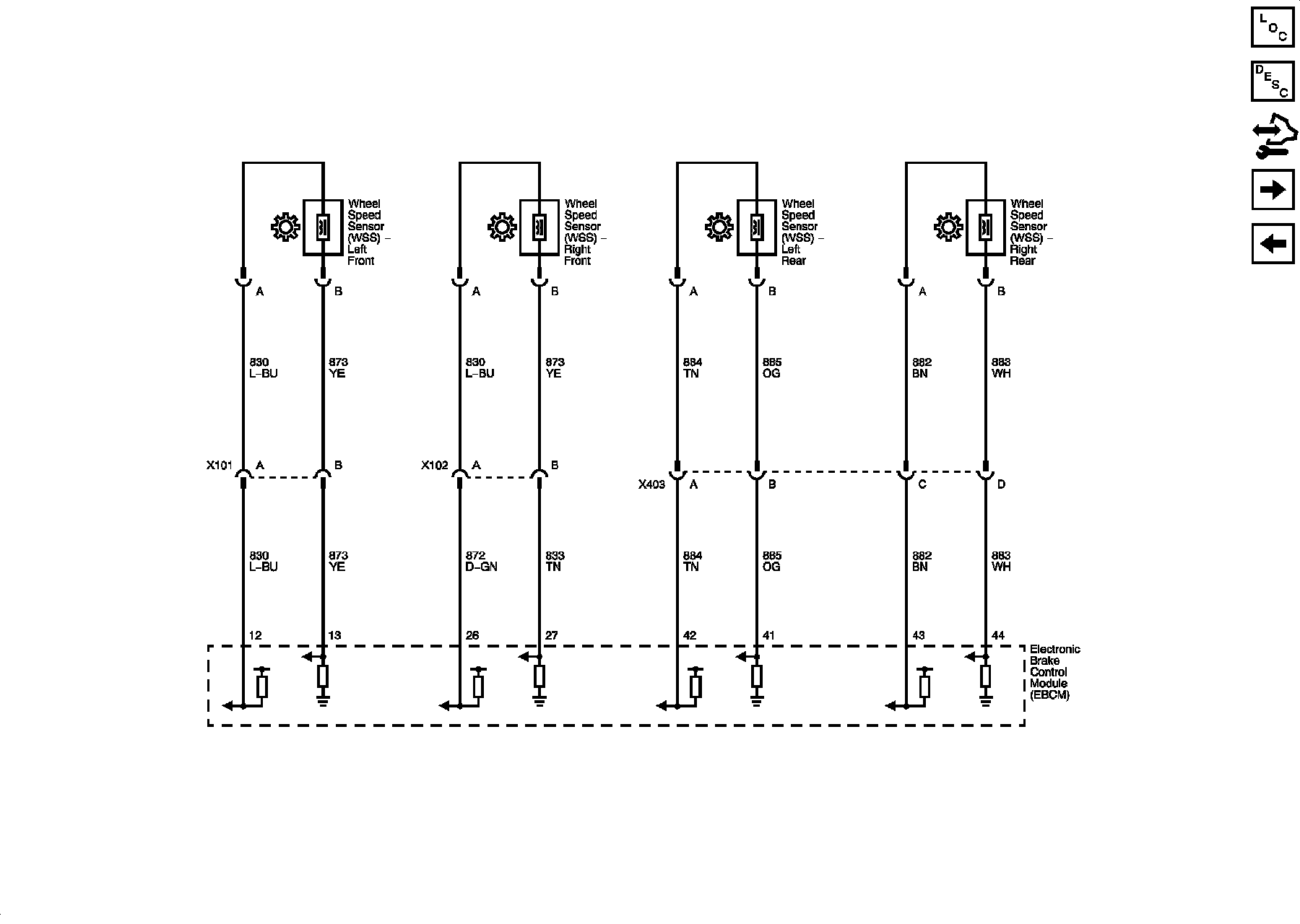 Power, Ground, DLC, Indicators, Traction Control Switch, and Brake Pedal Position Sensor