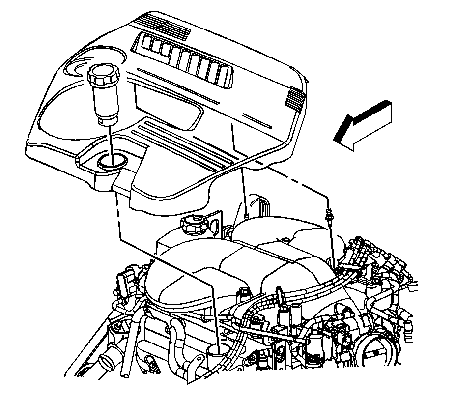 1. Place the cover over the ball studs, aligning the cover with the power steering reservoir cap and the oil fill tube opening.