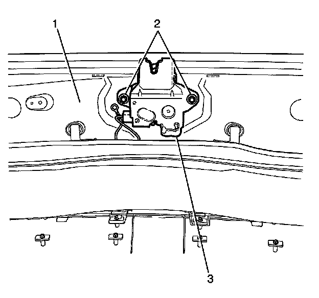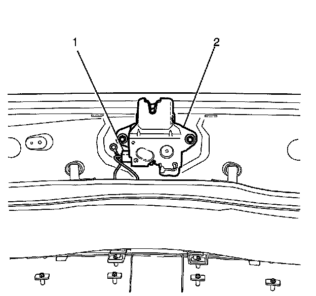 5. Remove the rear compartment lid lock actuator (2) from the vehicle.