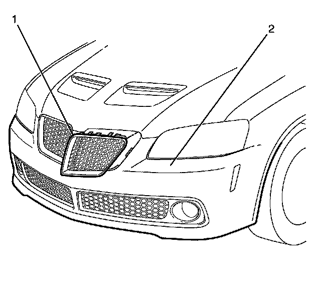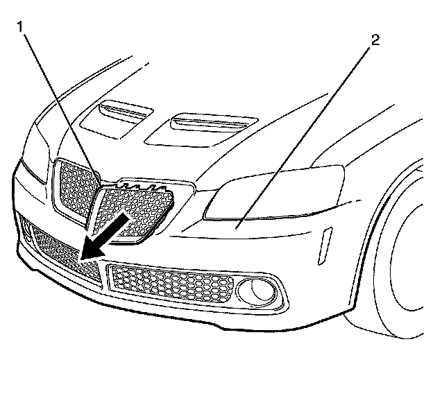 1. Remove the radiator grille (1) from the front bumper fascia (2).
