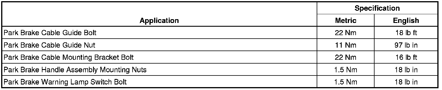 Parking Brake System: Specifications