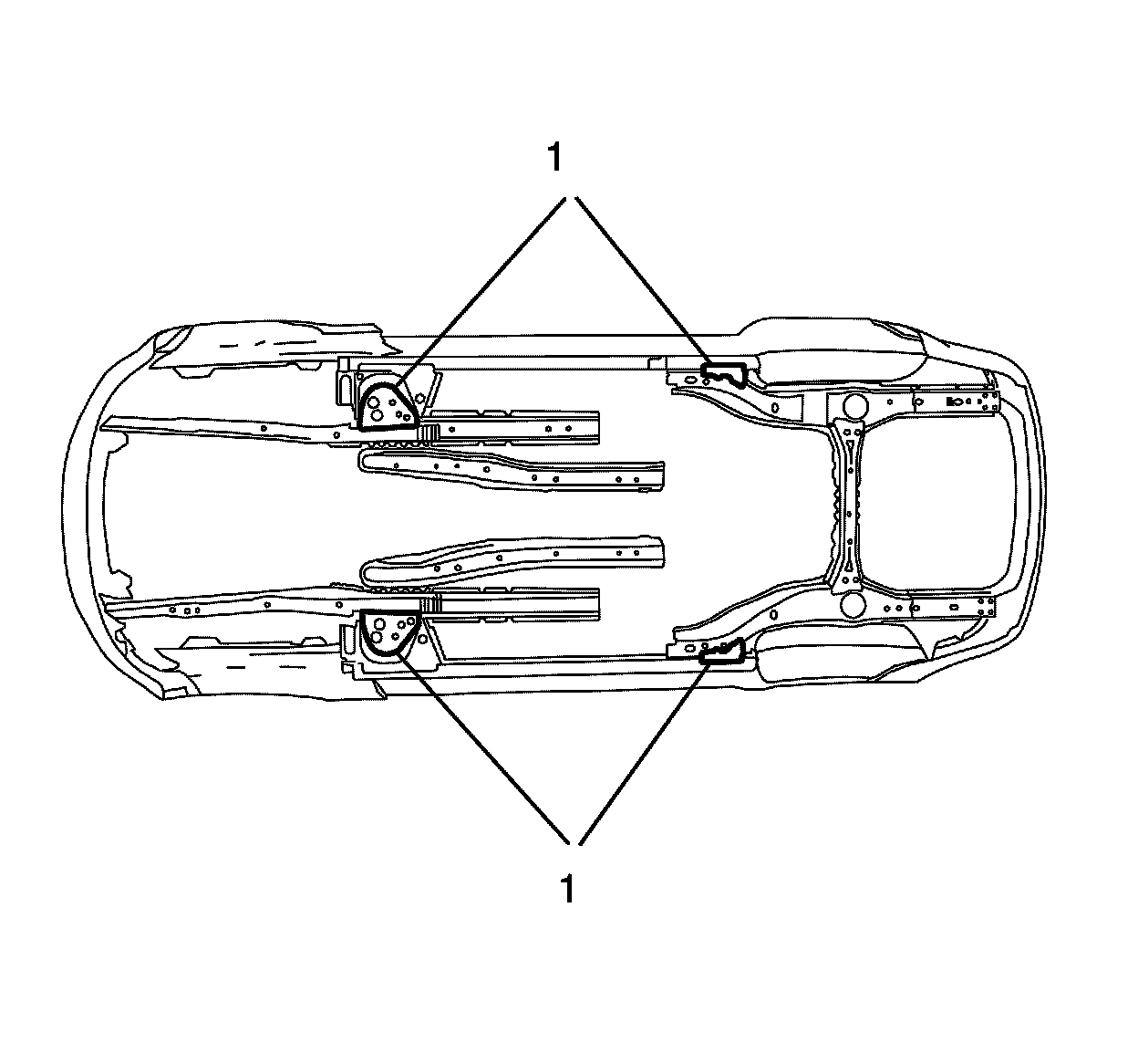 If you use any other lifting methods than the preferred vehicle jacking locations (1), take special care not to damage the fuel tanks, the exhaust system or the underbody.