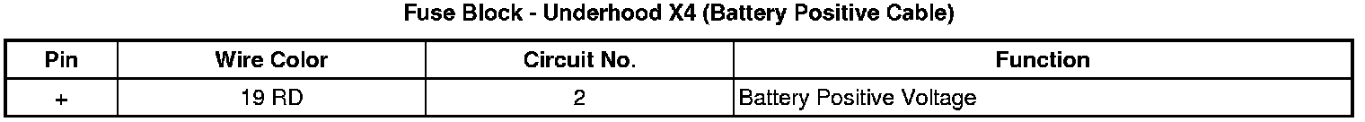 - Underhood X4 (Battery Positive Cable)
