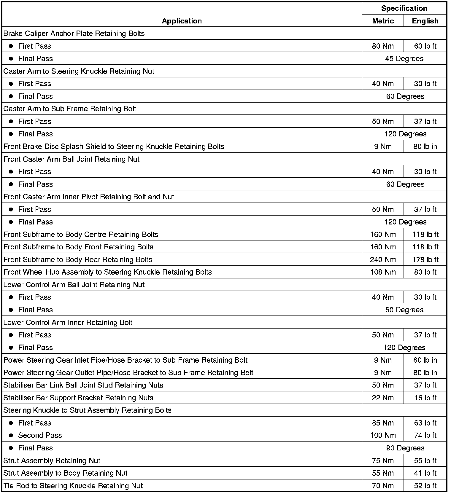 Fastener Tightening Specifications