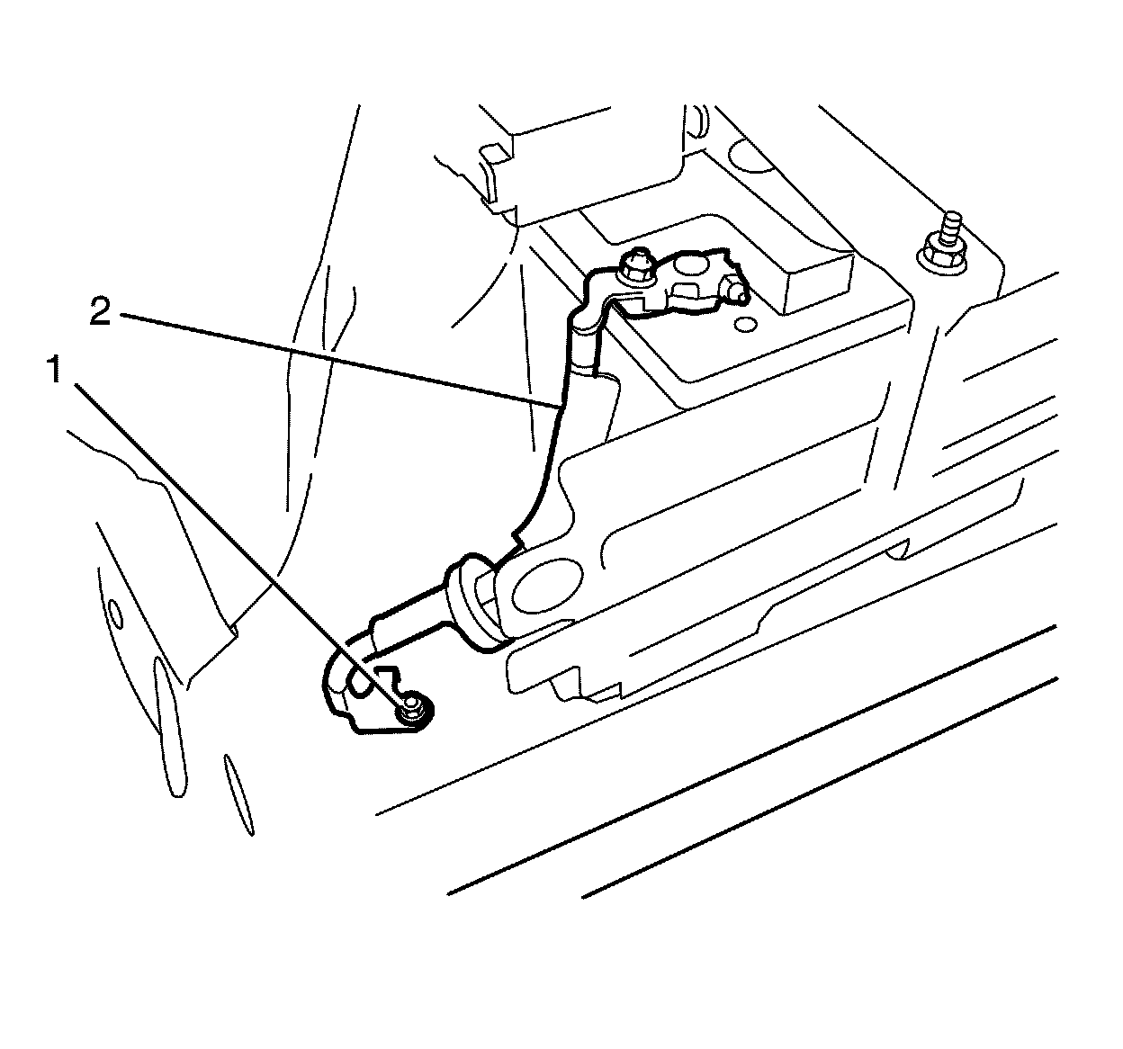 6. Remove the negative battery cable from the vehicle (2).